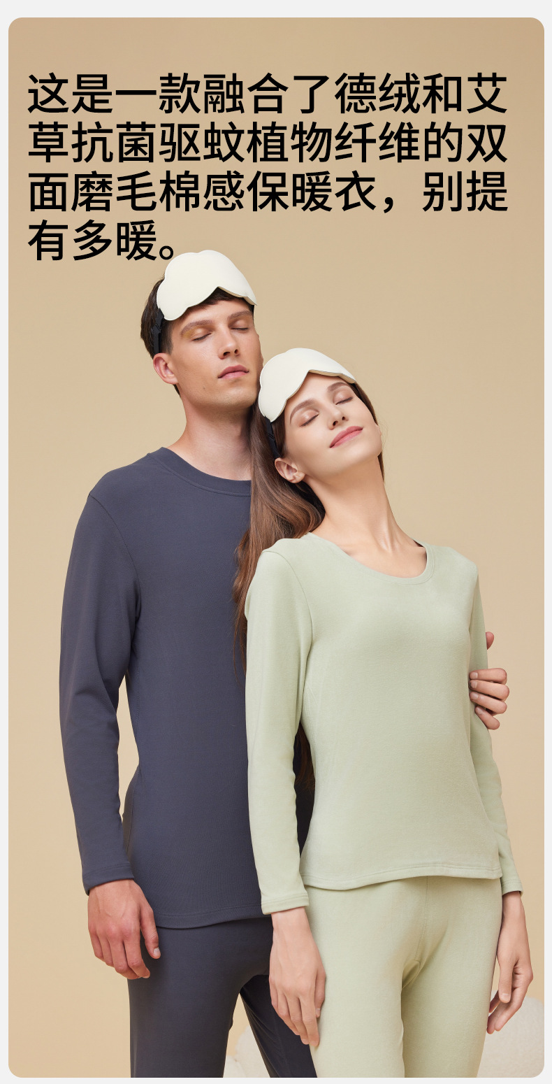 • Wormwood antibacterial couple thermal underwear suit fleece-lined thickened winter cold-proof windproof men's and women's bottoming long johns