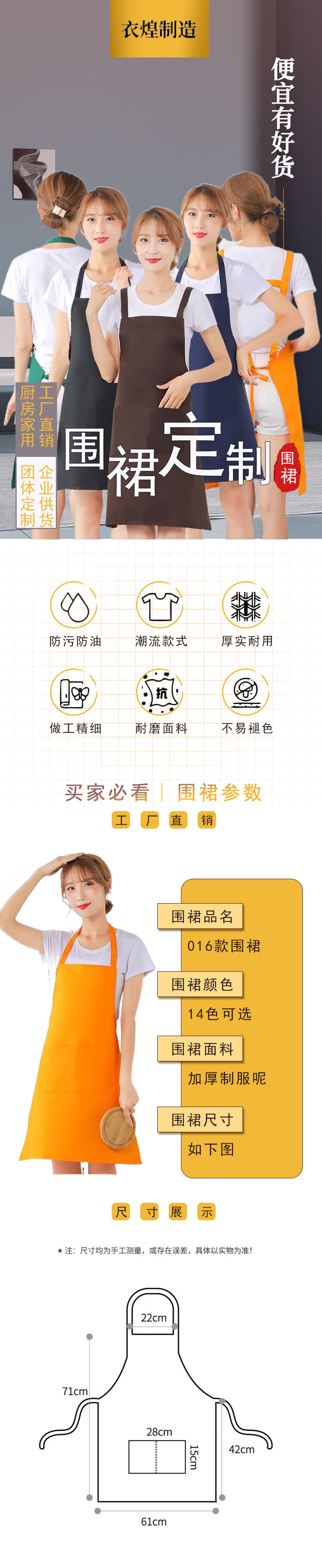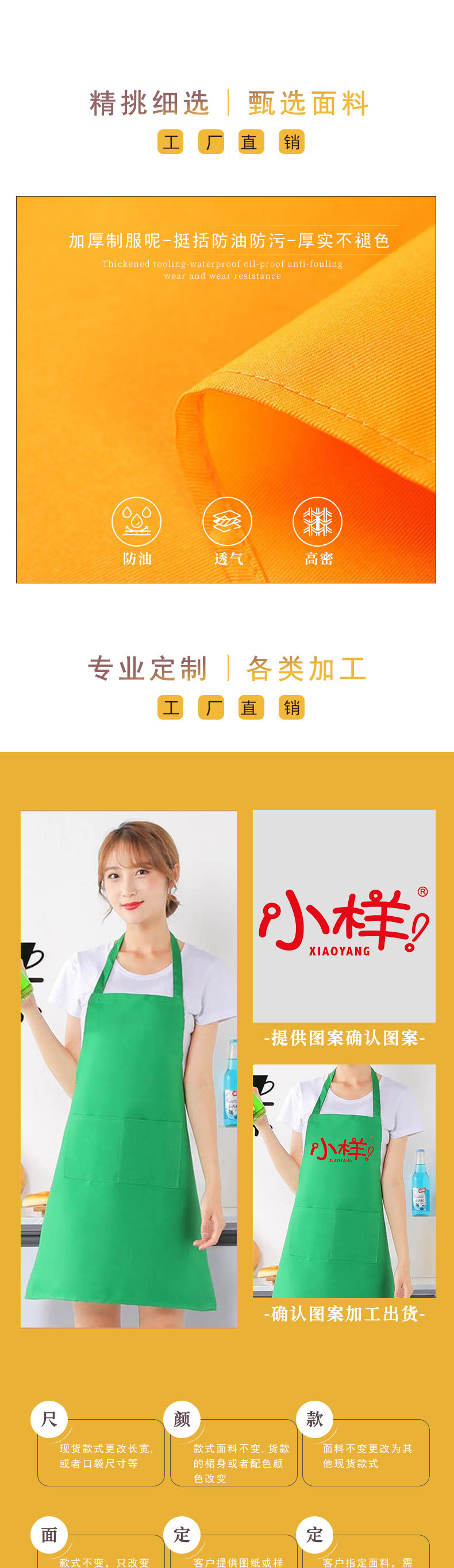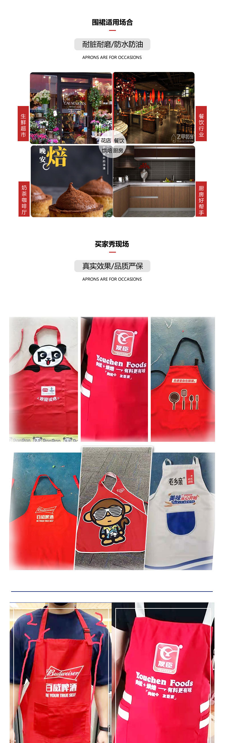 • Hanging Neck Advertising Douyin Live Cotton Apron with Embroidered Logo for Home Kitchen Waterproof and Oil-Proof Coverall Cross-Border