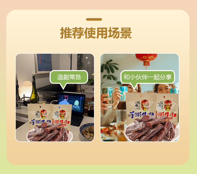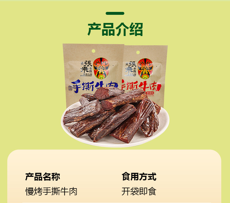• Zhang Fei's Five Fragrance Sichuan Spicy Dried Beef jerky, Sichuan specialty, about 70% dry, hand torn and dried beef, casual snack